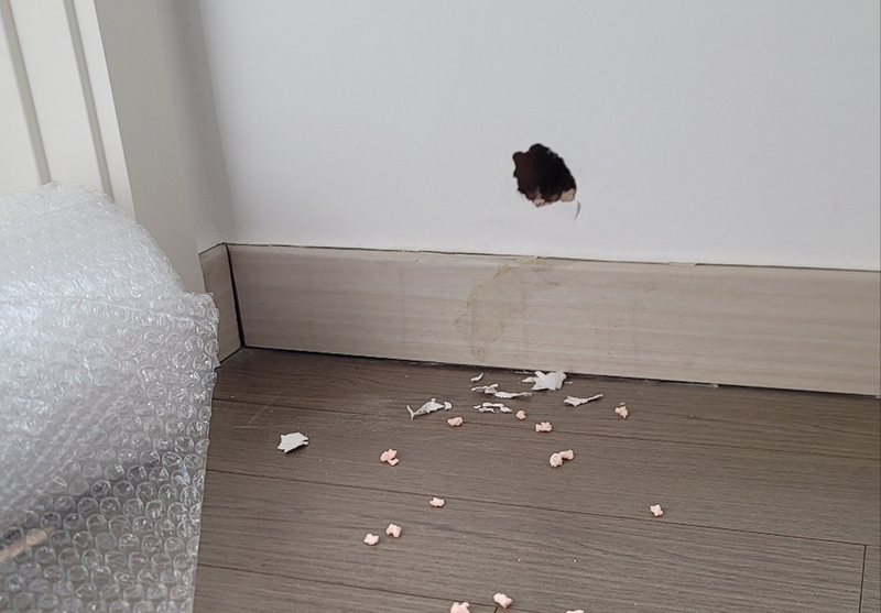 "여행 다녀왔더니 벽에 쥐구멍이 뚫려 있어요..."